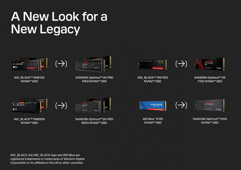 Компания Sandisk отказывается от бренда WD для именования своих твердотельных накопителей и запускает новый бренд Optimus.