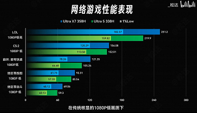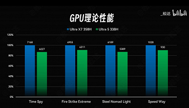 Также есть несколько результатов модели Core Ultra 5 338H. Она стоит особняком, так как не относится к классу Ultra X, но при этом имеет iGPU Arc B370 не с 4 ядрами, а с 10 ядрами, что весьма близко к Arc B390.