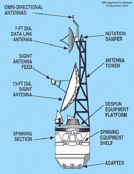 Устройства были оснащены двумя огромными антеннами: складной параболической для перехвата сигналов и передающей для мгновенной отправки данных в штаб-квартиру NRO. Основной целью шпионажа были системы ПВО, а также узлы стратегического управления и контроля.