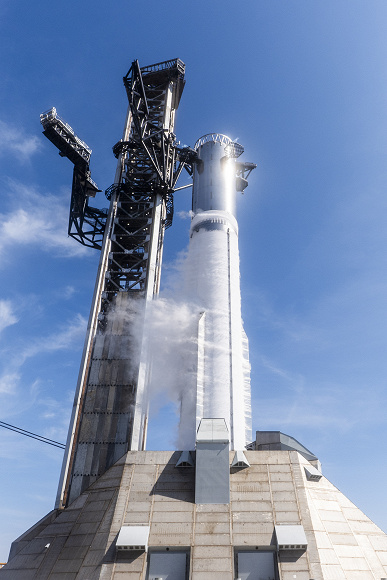«Завершена начальная кампания по активации Super Heavy V3 и стартовой площадки Starbase Pad 2, в ходе которой впервые была произведена загрузка криогенного топлива и окислителя на ускоритель V3. Хотя статические испытания с участием 10 двигателей завершились досрочно из-за проблемы на земле, мы наблюдали успешный запуск всех установленных двигателей Raptor 3. Далее: подготовка ускорителя к статическим испытаниям с участием 33 двигателей», — сообщила SpaceX.